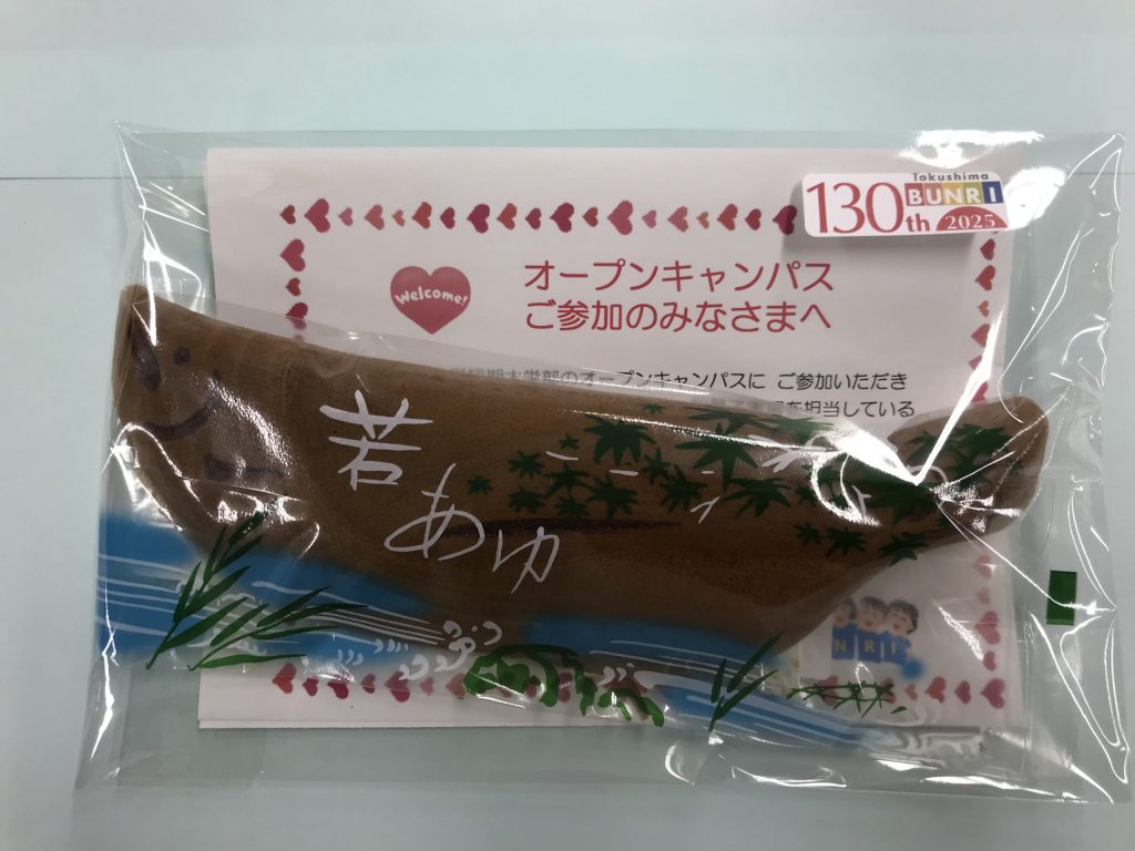 生活科学科生活科学専攻では和菓子実習の授業があり、「阿波の名工」として名高い多田晃治先生、福岡賢治先生の指導が受けられます。7月17日のオープンキャンパスでは福岡賢治先生による「若あゆ」を来学記念としてプレゼント!鮎は6~8月が旬とされています。和菓子で季節を感じてみませんか。短期大学部へのお越しをお待ちしています。