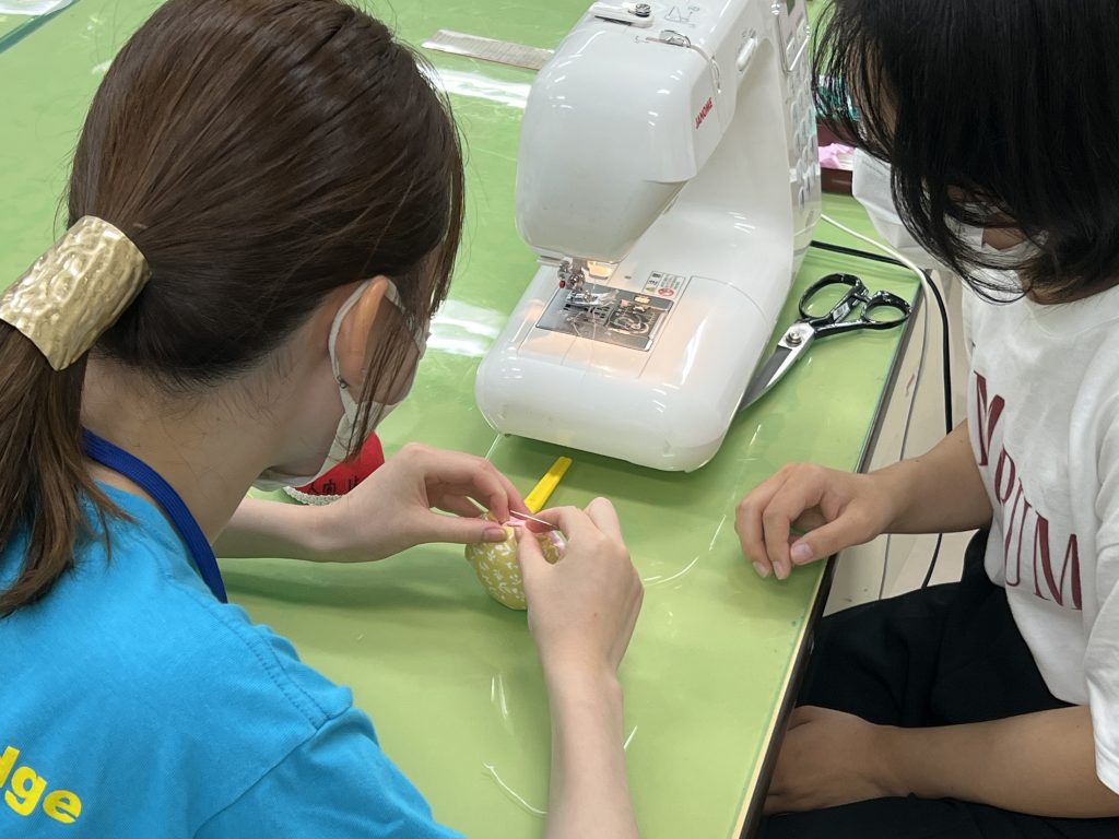 服作り授業の中で出てくる残布(余り布)を利用して製作します。