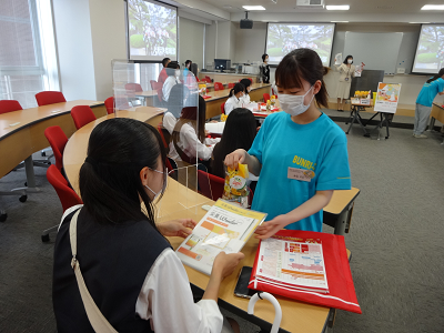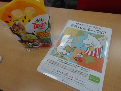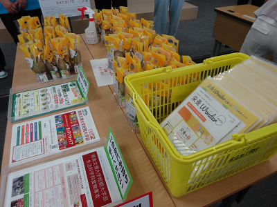来場者の皆さんへ、協賛商品のキウイ2種・野菜ジュースと栄養や食に関する冊子をプレゼント。