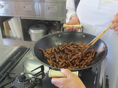 続いて長尾准教授による「昔懐かしのお菓子『かりんとう』を作ってみよう!」です。