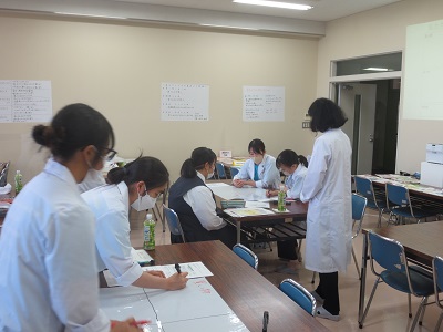 調理実習後は「SDGs達成に向け、何ができるか考えよう!」をテーマにグループ討論をして、皆の意見をまとめて書いています。