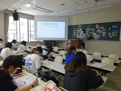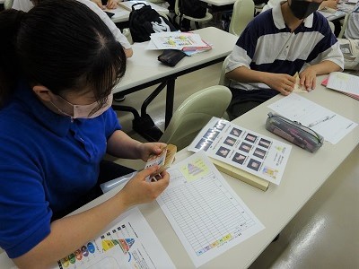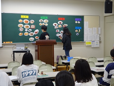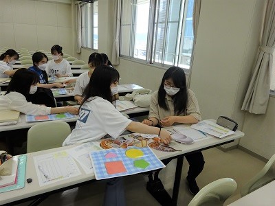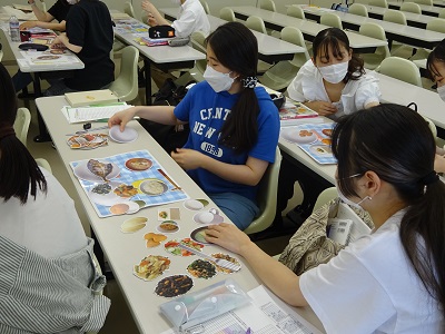 栄養カウンセリング実習の授業で、食事バランスガイドを用いて栄養指導を行いました。
