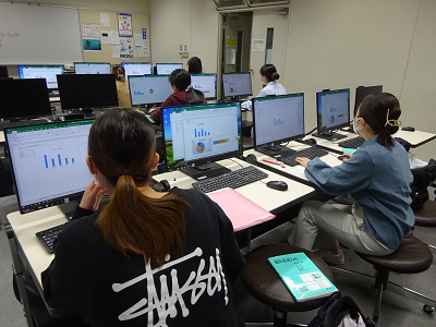 栄養情報処理では、エクセルを活用し簡単なデータ処理やグラフの作成、およびパワーポイントを利用してプレゼンテーションを行います。