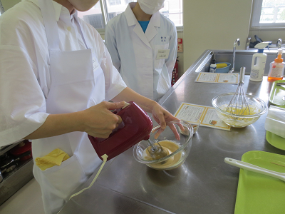 調理実習を中心に、卵の起泡性:メレンゲの機能と作り方を学びました。