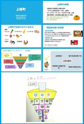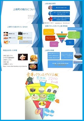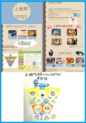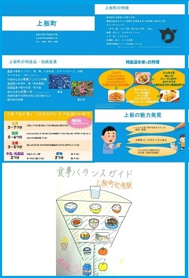 2年生は、栄養カウンセリング実習&栄養情報処理の2つの授業でコラボし、「上板町の魅力発見~上板町版食事バランスガイド~」を作成して掲示しました。
