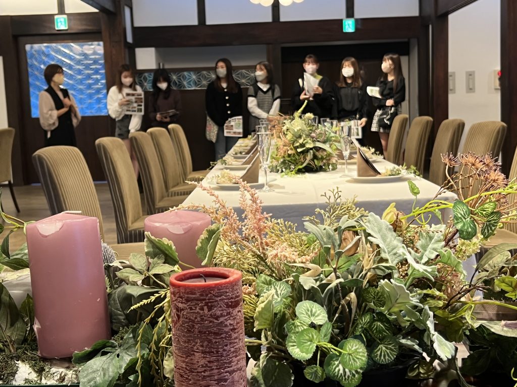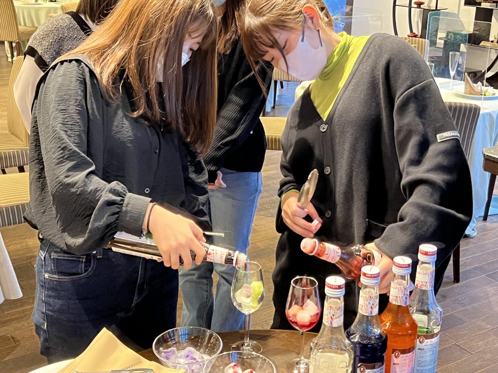 公開日 2022年10月31日 1年生のブライダルプランニング授業で樫野俱楽部へ行きました。 ブライダル会社ときわさまの結婚式場です。 とても素敵な式場で、模擬挙式も行いました。 最後にカクテルの作り方も学びました(ノンアルコールです)