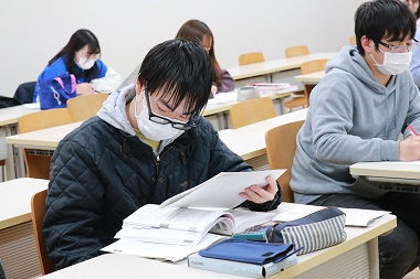 商科1年生は、10日実施の「日商簿記検定3級」の合格に向けて