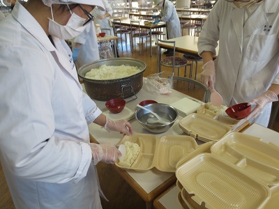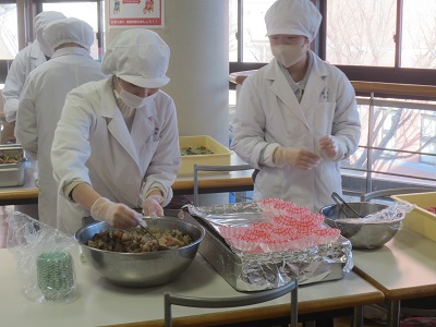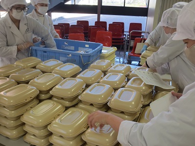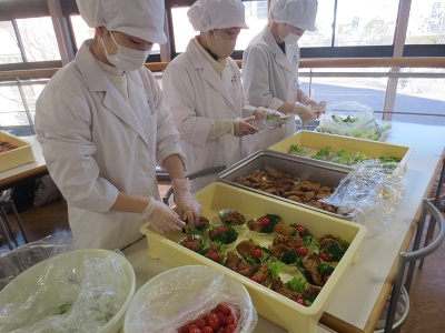 今回のメニューはシカカツのあおさシャンテリーヌソース添え、シカ肉の筑前煮、シカ肉と彩り野菜の甘辛味噌炒めで、今回もシカ肉たっぷりのメニューです。