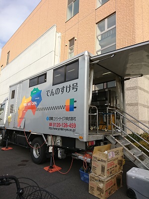 トラック1台分のキッチンカー「でんのすけ号」は業務用電化厨房体験車で、一度に4~5名見学することができます。