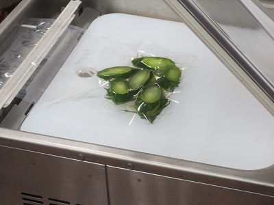 真空になるので、液の沸点が下がり、沸騰しています。 きれいな浅漬けができました!
