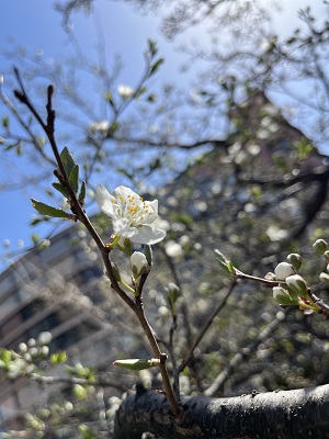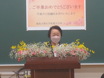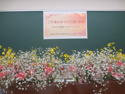 式典の後は最後のホームルーム。こちらも花盛りです。