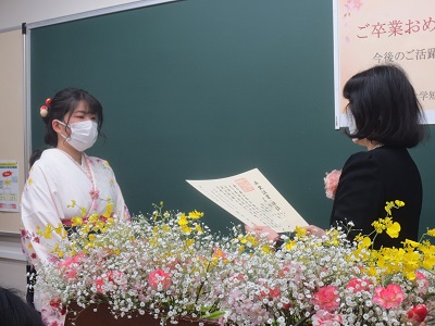 担任から一人ひとりに卒業証書・学位記が手渡されました。