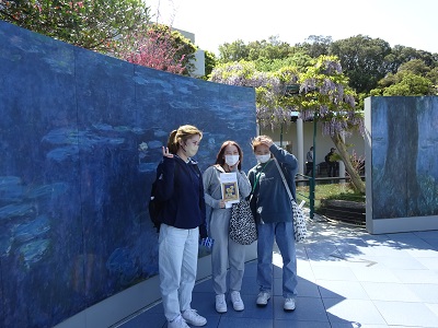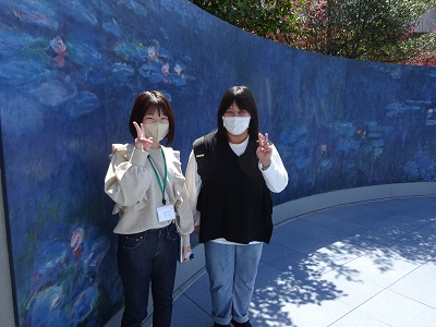 モネの睡蓮はみんな大好きです。ちょうど、藤の花が満開でした。