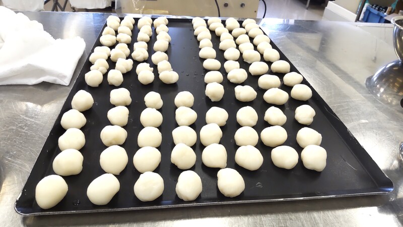 先ずは団子をまるめます。 そして、串にさしていきます。