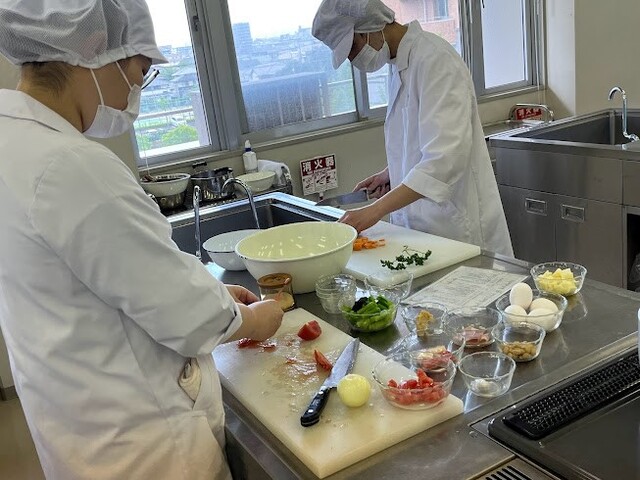 たくさんの野菜をひたすらカット。同じ大きさに揃えることがポイントです。