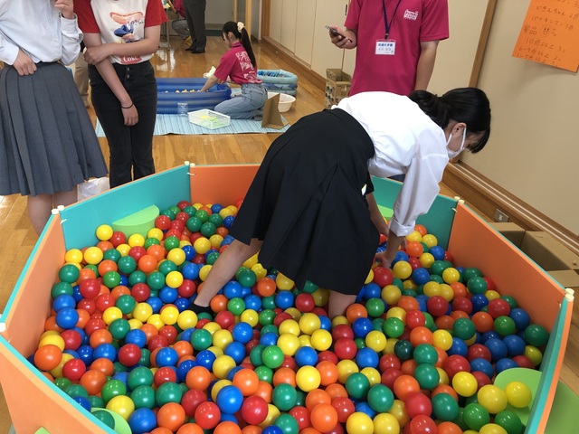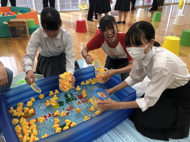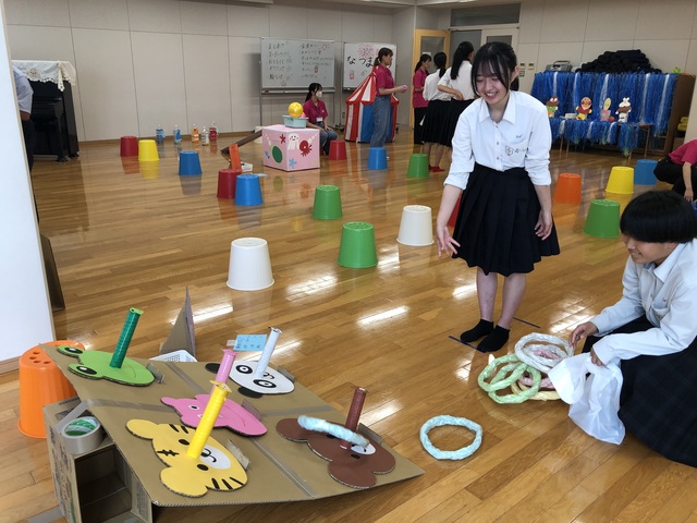 7月27日(土)オープンキャンパス、保育科は前回につづいて模擬授業「夏祭りごっこ」をします。学生が子どもたちが挑戦したくなるような工夫を凝らしたコーナーを作りました。ヨーヨー釣り、アヒルチャンすくいやアンパンボール探しにもトライしてください。