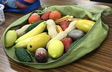 次は音楽に合わせてシェーカーを振りました。どんぐりや、トマト、ゴーヤ、ヤングコーンなどいろいろな形のシェーカーがあって、振ってみるとそれぞれ音も違いました。