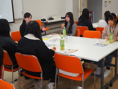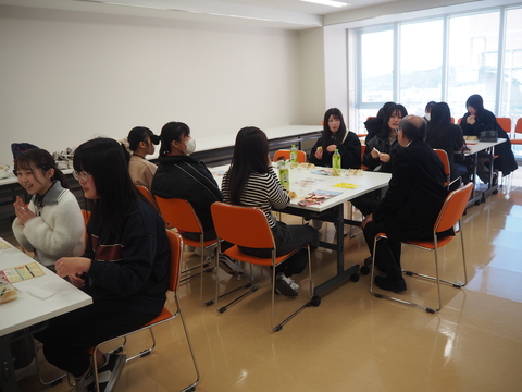 全大会の後は、各学科に分かれて、それぞれ軽食を食べながらの交流会を実施しました。