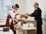 大学全体の卒業式典が終了した後、各学科に分かれて卒業証書の授与が行われました。