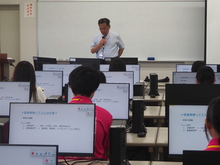 模擬授業は「医事コンピューターを使って医療事務を学ぼう」です。