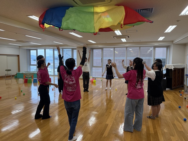 パラバルーンでは、子どものどんな行動に気をつけないといけないのか学びながら遊びました。