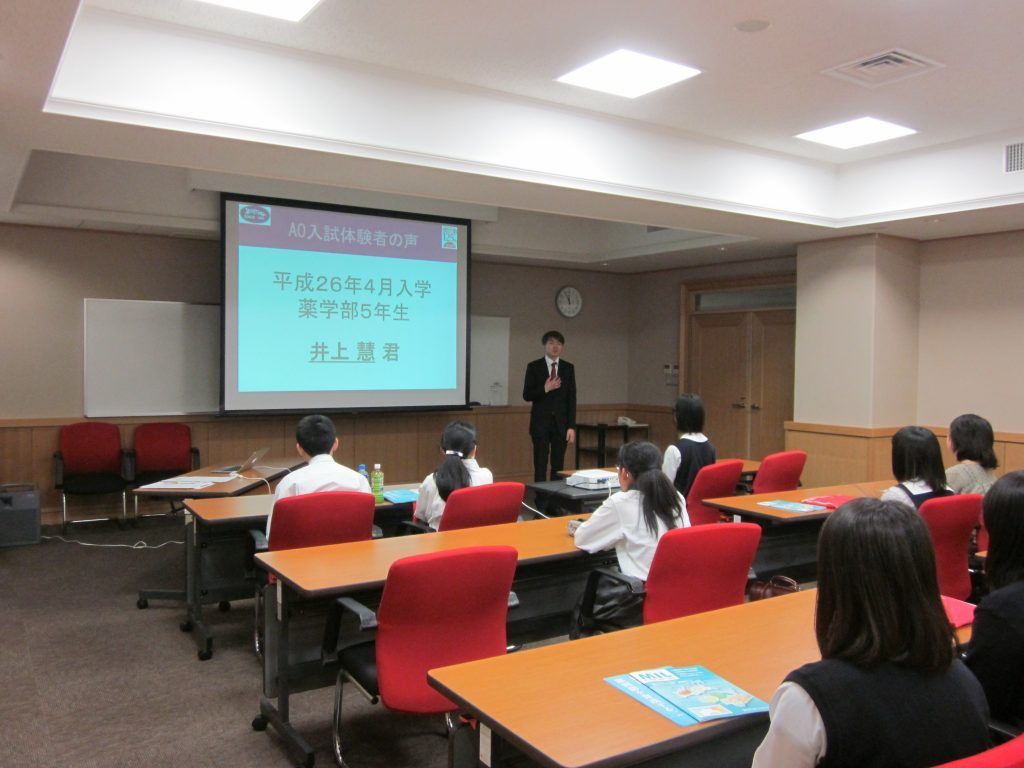 薬学部では教員および学生による薬学部の紹介・推薦入試に関する説明会を行うとともに、午後から模擬授業「調剤・製剤を体験してみよう!」を実施します。