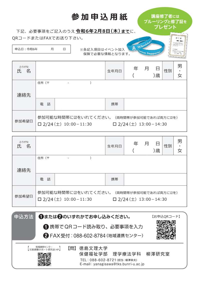 取得した個人情報は、保険加入及び講座の運営・修了証の発行にのみ使用させていただきます。