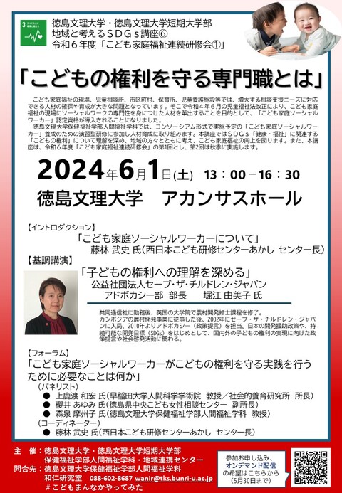 地域と考えるSDGs講座⑥・令和6年度「子ども家庭福祉連続研修会①」
