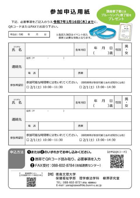 取得した個人情報は、保険加入及び講座の運営・修了証の発行にのみ使用させていただきます。