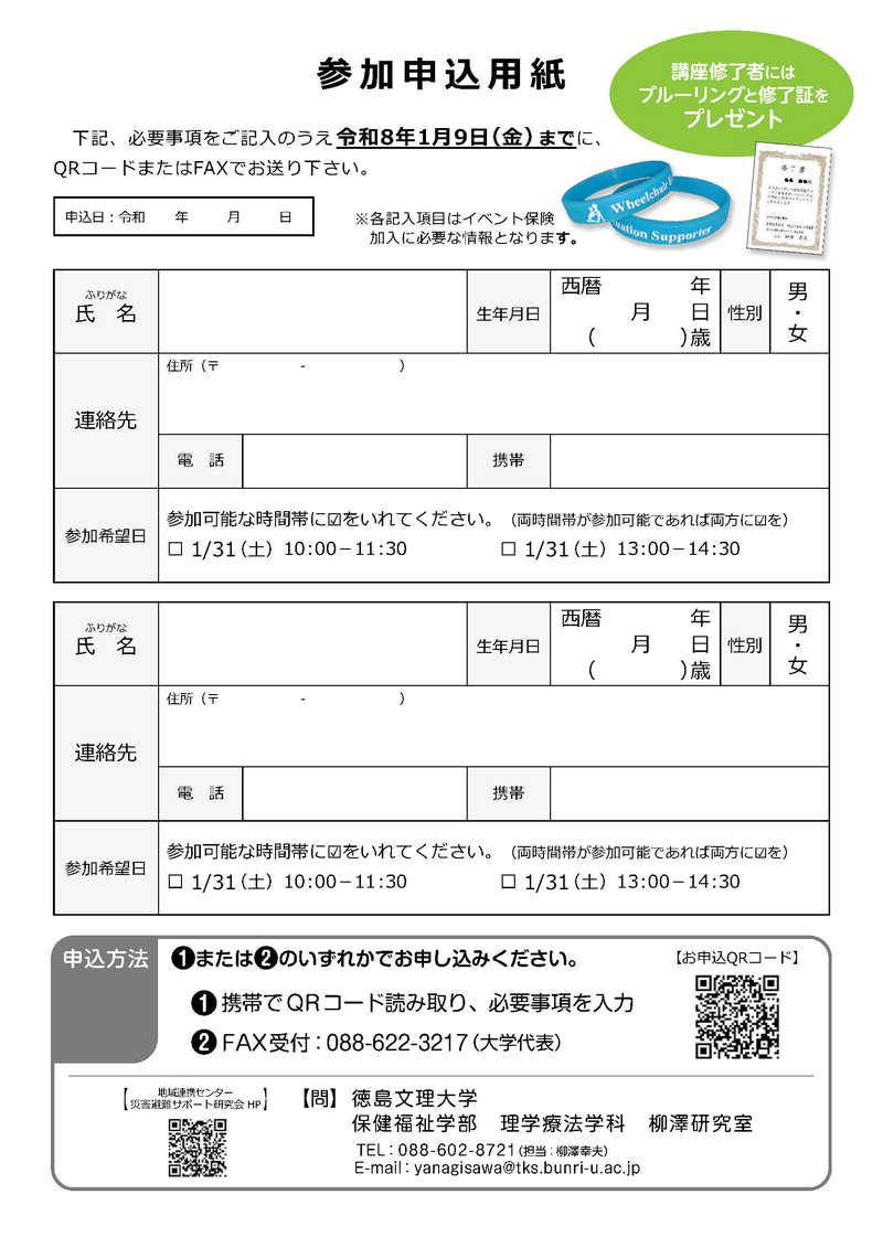 取得した個人情報は、保険加入及び講座の運営・修了証の発行にのみ使用させていただきます。