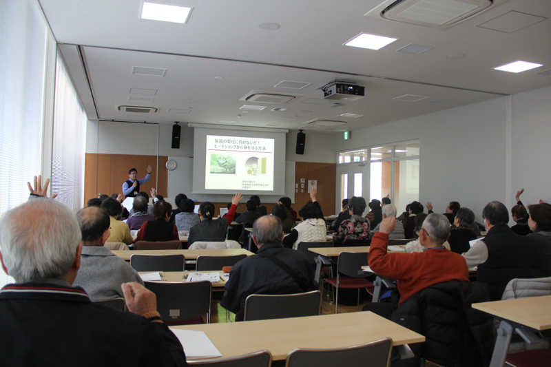第16回は保健福祉学部理学療法学科 平野先生・平島先生による「気温の変化に負けないぞ!ヒートショックから身を守る方法」「交通事故にあわない、おこさないために!」のセミナーが行われました。