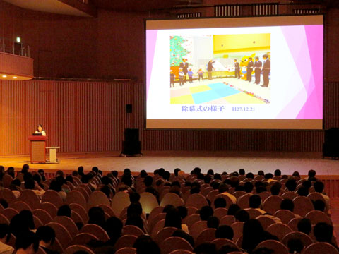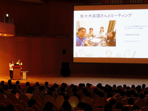 今回の地域学では、研究やサークルなど、地域を舞台に活躍する学生ら8組26人がその活動を1年生に紹介しました。