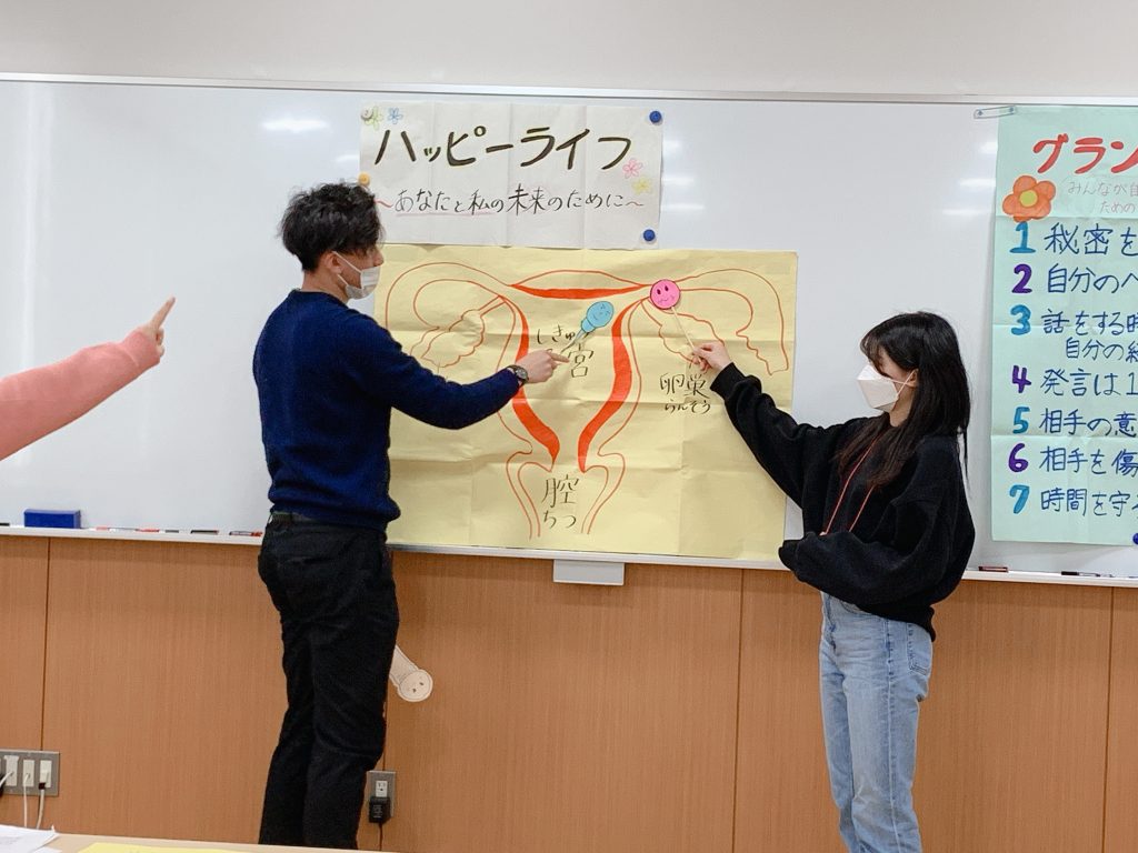 5年前から毎年小松島西高校1年2年生を対象に、思春期ピアカウンセラー(ぴあっこ)がピアエデュケーションを行っています。コロナ禍でも対面で行ってきましたが、コロナウイルスの感染者数が増加する中、今年度はオンラインで実施しました。テーマは、1年生は「伝えよう、自分の気持ち。考えよう、相手の気持ち」でlineをとりあげ、2年生は「ハッピーライフ あなたと私の未来のために~知ろう!妊娠・避妊~」で妊娠・避妊について考えてもらいました。意見を取り上げるディスカッションは、自分の考えをGoogleフォームに書いてもらい、オンラインで画面をみながら行いました。ぴあっこも、2日間学年クラスごとに3回ピアエデュケーションを行い、最終日は慣れてきてスキルもアップすることができました。