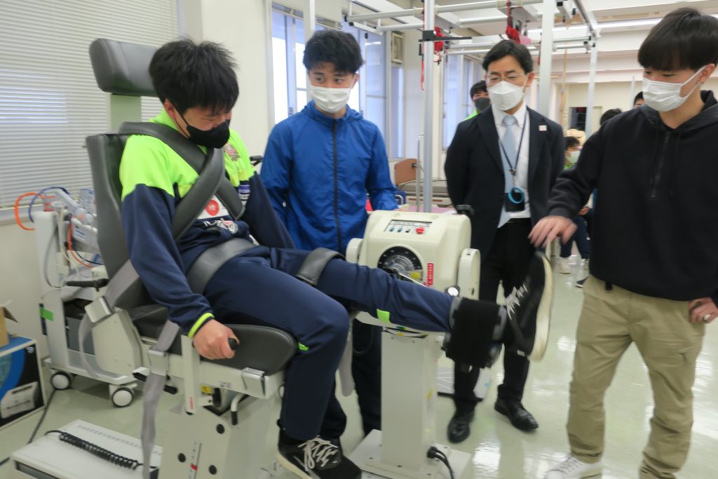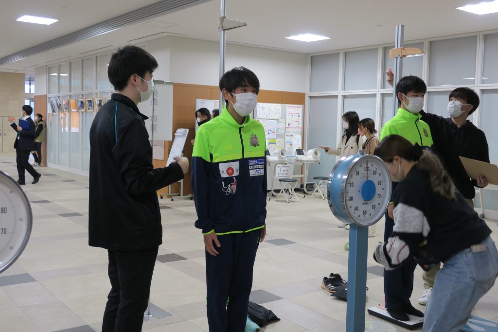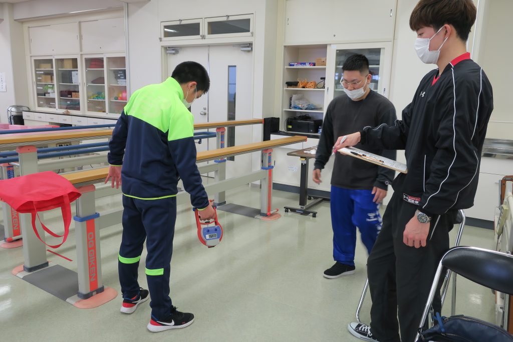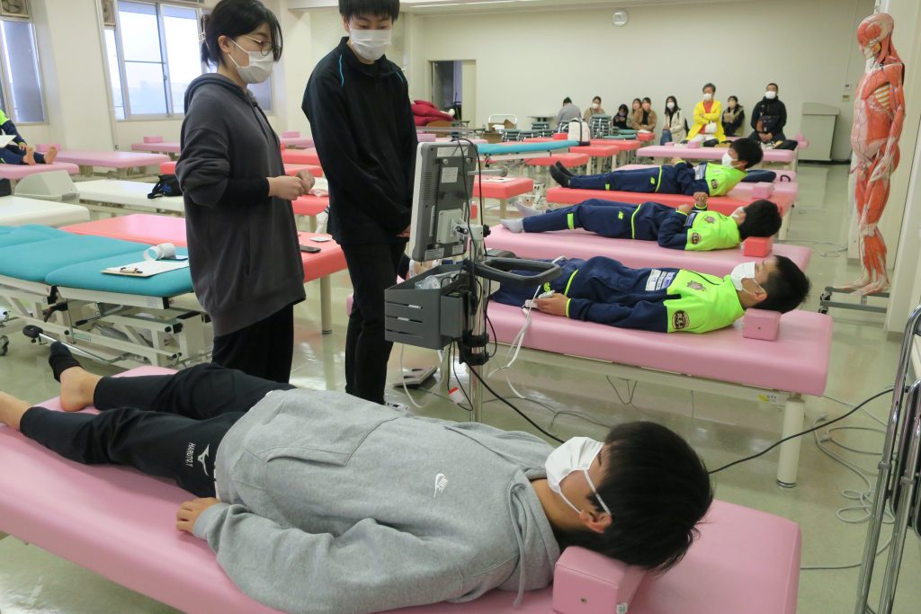 令和4年3月26日(土)理学療法学科 柳澤幸夫教授・大西康平講師・後藤強講師、食物栄養学科 小川直子講師の指導の下、徳島サルトFCに所属する中学生にお越しいただき、学生が測定を行いました。