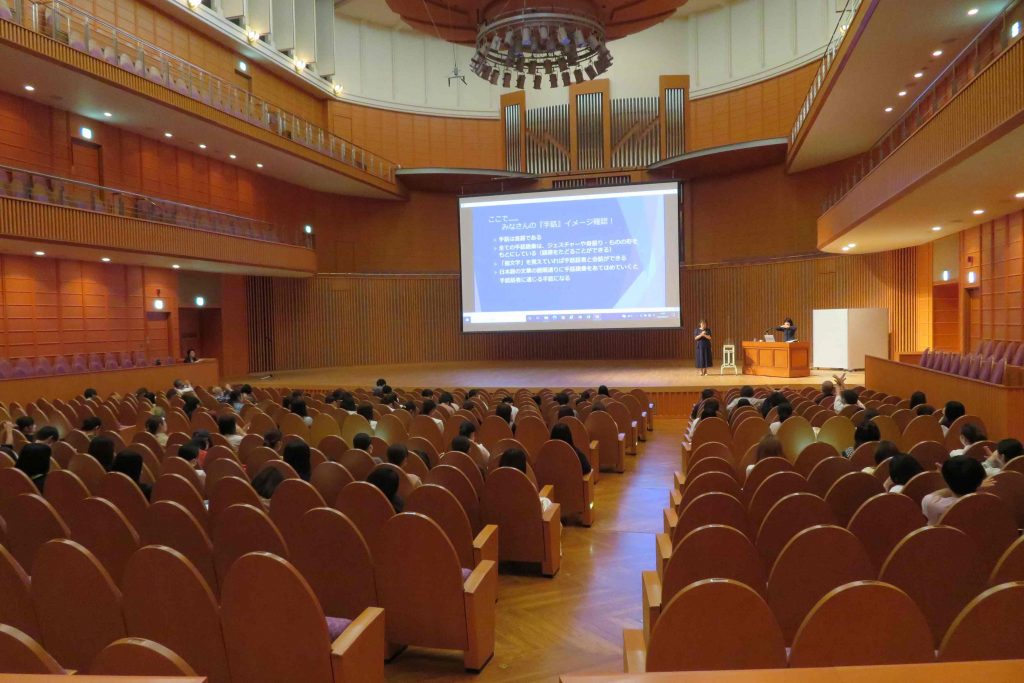 講演会の後、保育科の1年生、2年生を対象に手話のワークショップを行いました。