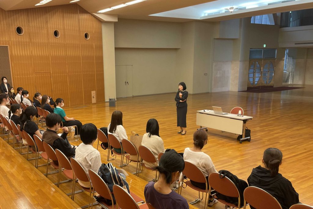 6月16日(木)に徳島文理大学 短期大学部公開授業として、地域と考えるSDGs②講座「異文化コミュニケーション ~手話言語から始まる新しい世界~」を行いました。講師に社会福祉法人聴力障害者情報文化センター 公益支援部門 部長 飯泉菜穂子 氏をお招きし、ご講演頂きました。