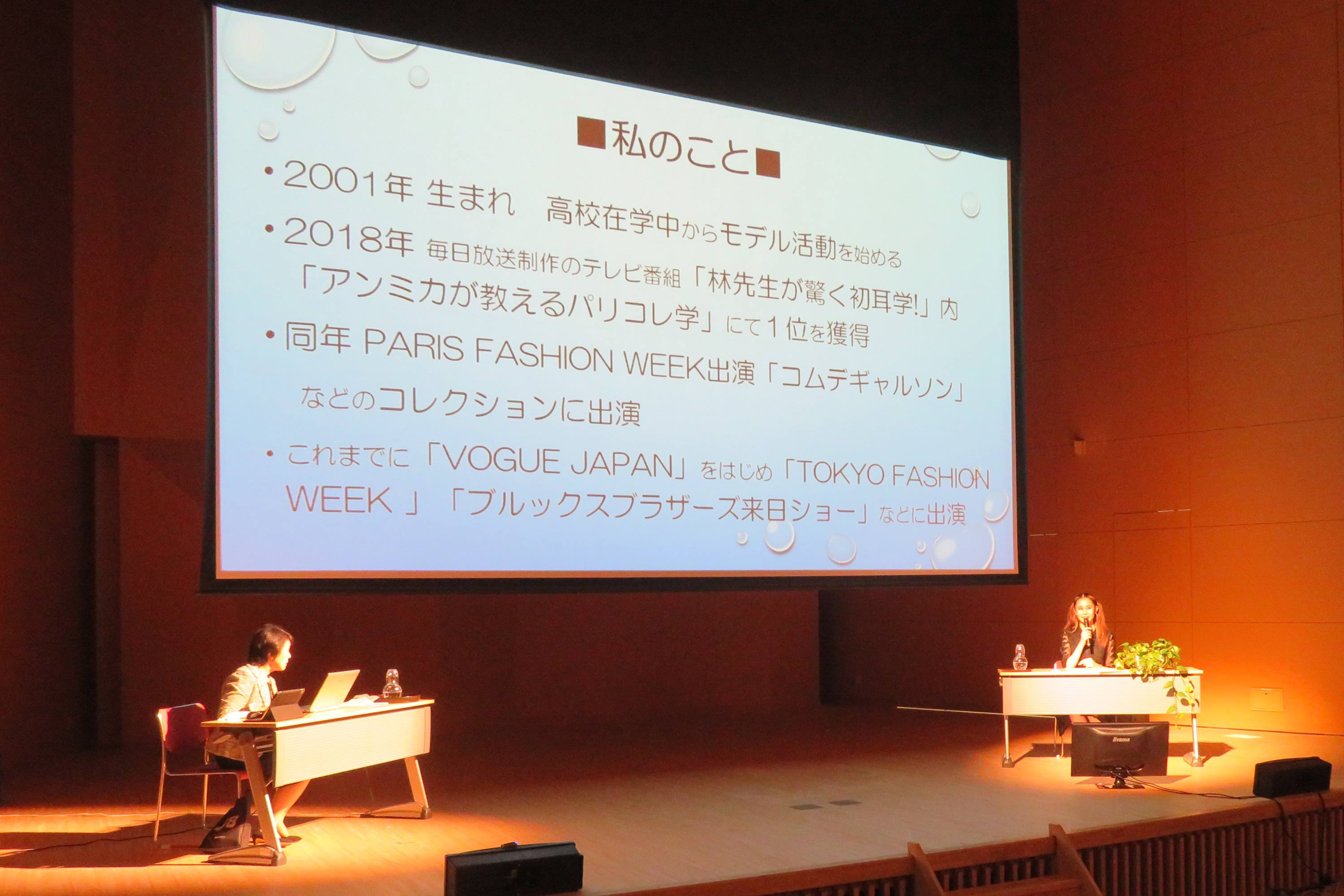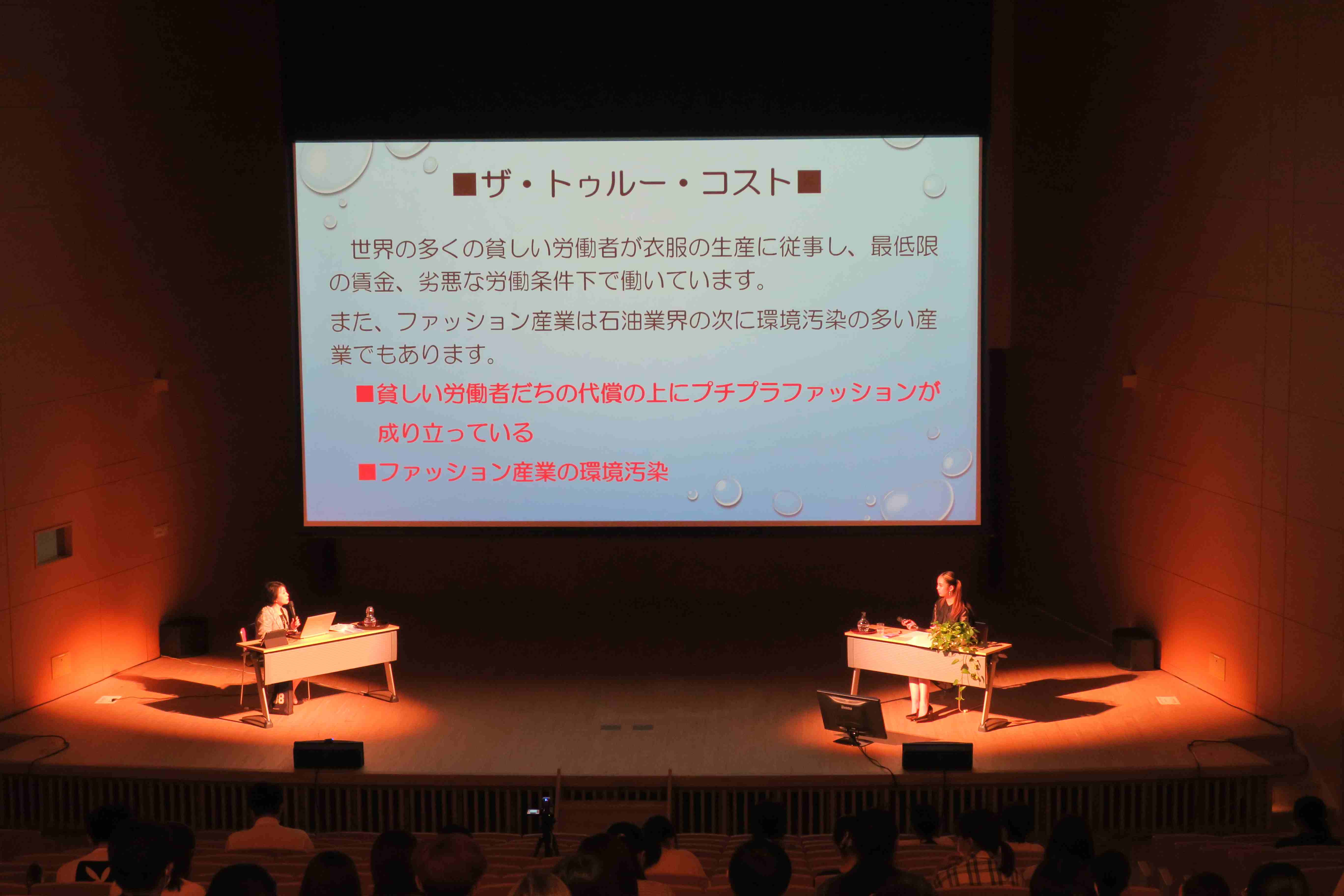 7月14日(木)に徳島文理大学 短期大学部公開授業として、地域と考えるSDGs③講座「サスティナブルファッション ~過剰に生み出され捨てられそして今、美しく変わる~」を行いました。講師にファッションモデルでブランド「ZELF」CEOの小野寺南友 氏をお招きし、徳島文理大学短期大学部 岡部千鶴 学部長との対談形式でご講演頂きました。