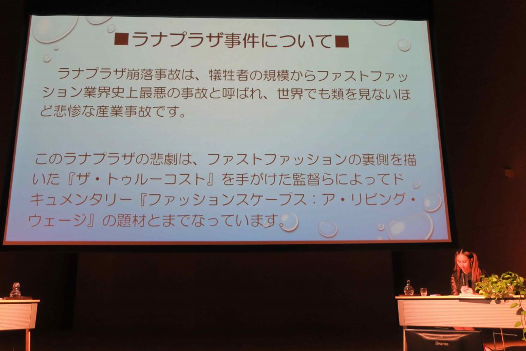 大学の授業で学んだことに興味を持ち、自分で調べ、行動に移してきた小野寺氏。フェアトレードの商品を「ZELF」で扱うようになったのは、「ラナプラザ事件」(※)を扱った本を読んで関心をもったことがきっかけだったとお話しされました。
