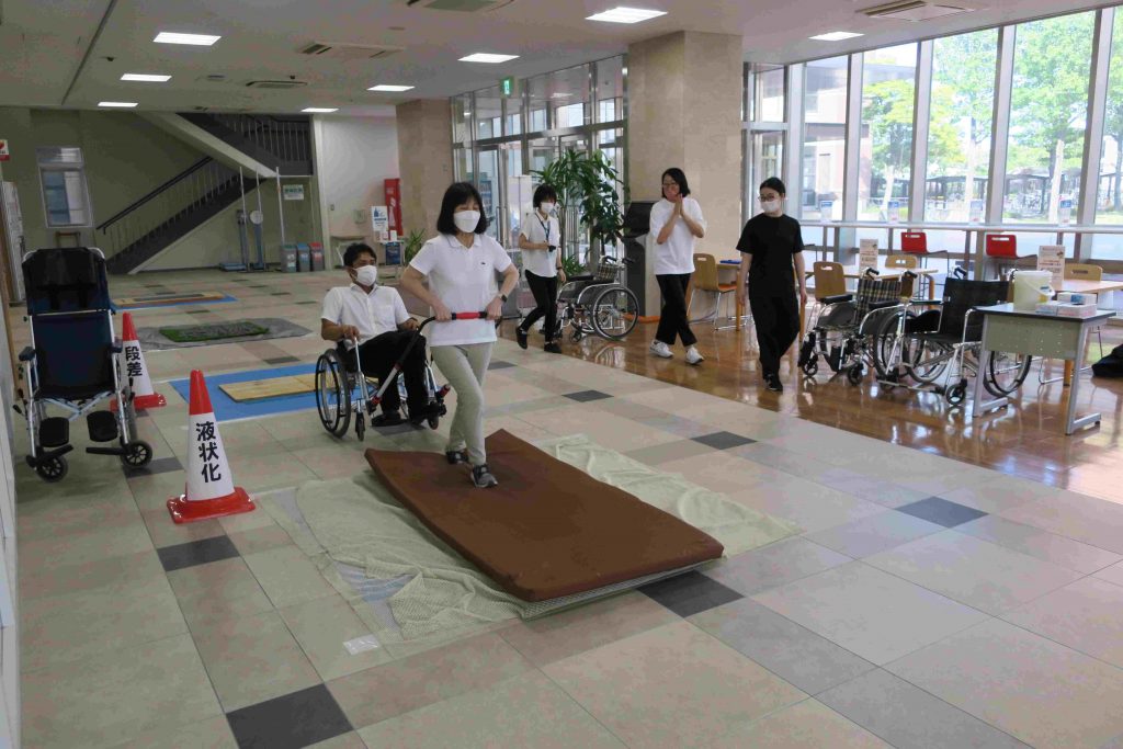 災害時などの避難経路上に障害物があるとき、車いすを使用する要配慮者等を安全に避難場所へ移動支援ができる技術を身につけることを目的に、「車いす避難サポーター養成講座」を8月29日(月)に開催しました。