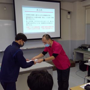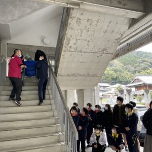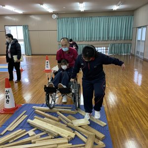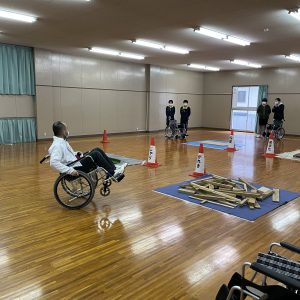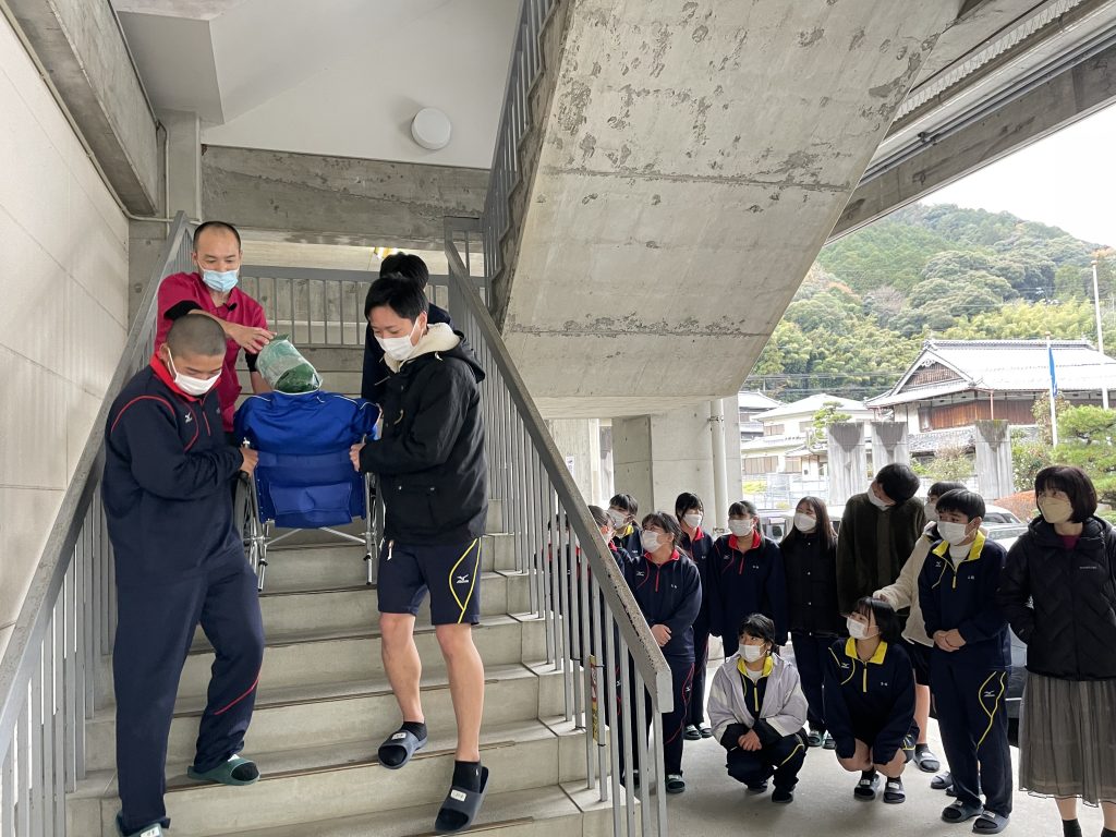 12月2日(金)・14日(水)に徳島県立池田高等学校辻校を訪問し、災害などの被害時に、避難経路上に障害物があるとき【車いすを使用する要配慮者等を、安全に避難場所へ移動支援ができる技術】を身につけることを目的に「車いす避難サポーター養成講座」を開催いたしました。