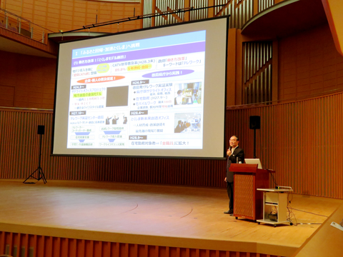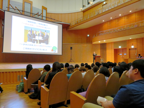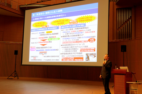 飯泉知事から徳島県の政策や魅力、本学との連携事業などついて丁寧にご説明いただきました。講演後には、学生からの質問があり、有意義な時間となりました。
