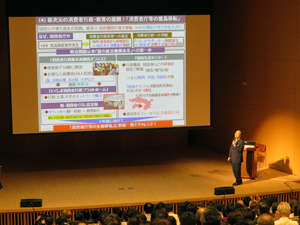 公開講座としている本授業では、一般の聴講生を含めたおよそ300人が、熱心に知事の話に耳を傾けました。知事からは、「地方創生・本格展開」加速!-徳島の未来を創る「3つの宣言」-と題し、徳島ならではの価値や徳島レガシー、未来志向の政策創造のお話をいただきました。