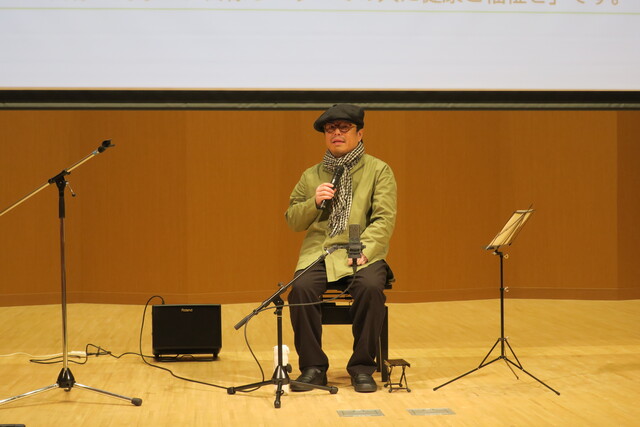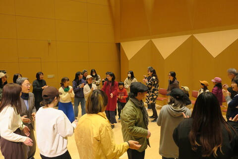 今回の講座は、11月3日に続き地域連携センターと保健福祉学部人間福祉学科との共催で、参加型の音楽ワークショップにより、年齢、国籍、あるいは専門領域など さまざまな違いを超えてひびきあう体験から、互いの理解を深め、SDGs目標3「すべての人に健康と福祉を」をテーマに行われ、本学の学生の他、幼児から高齢者まで40名の方にご参加いただきました。