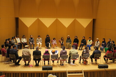 「サークル・ボイス」では、参加者全員がステージに上がり、青柳氏のファシリテーションのもと、輪になって声を出し合い、互いのハーモニーを響かせ、一体感を共有しました。誰もが互いを尊重し、協調し合う、かけがえのない時間と空間を共有することができました。