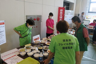当日は、徳島文理大学の学生33名、教職員16名が参加し、ステージでの講演と各ブースで来場者の方々に健康づくりのヒントを提供しました。