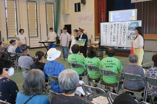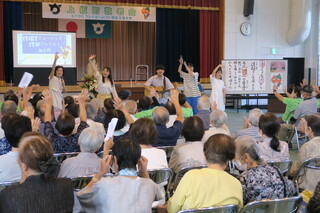 ステージでは、保健福祉学部理学療法学科 鶯春夫教授による「フレイルを予防し、元気で長生き」と、音楽療法コース 井村幸子准教授と学生たちによる「START ミュージック!STOP フレイル! in 上板」が行われ、運動や歌・踊りを通じてフレイル予防に取り組みました。